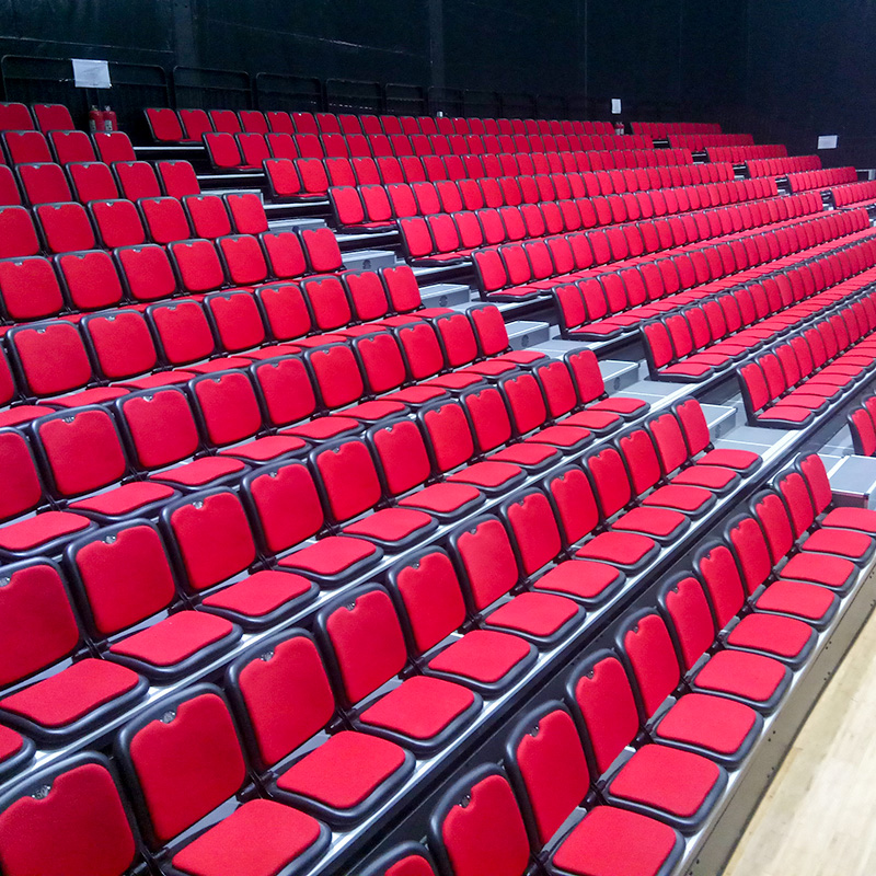 10. 活动看台系统中的所有金属件均经过喷砂打磨后静电喷粉处理,充分保证防腐防锈效果。